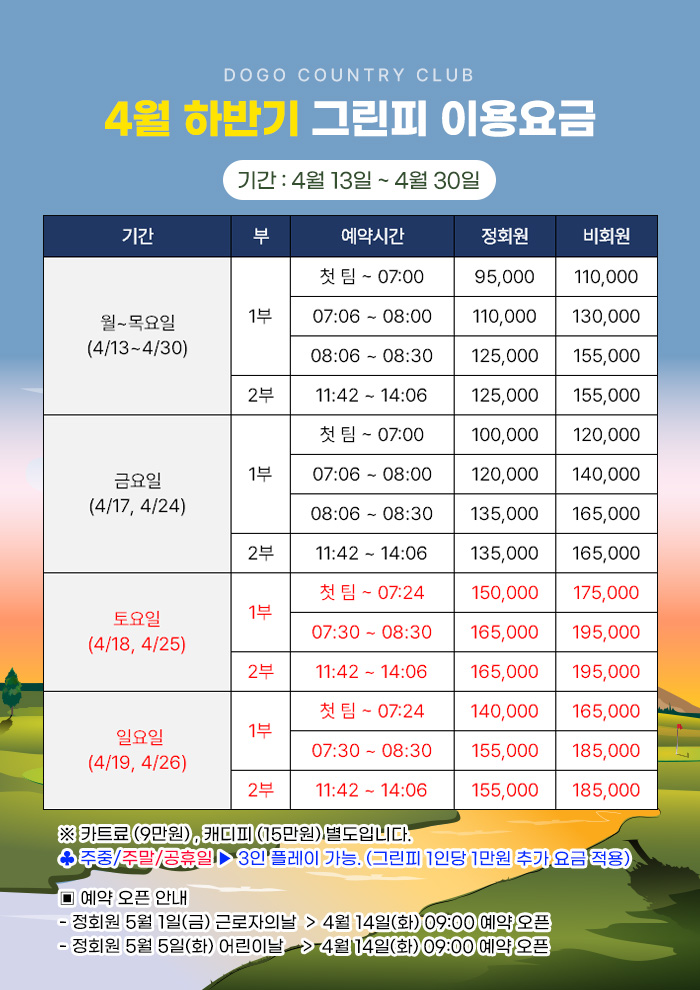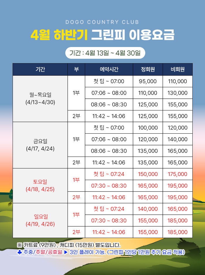 | 26년 4월 13일 ~ 4월 30일 그린피 이용요금 | 26-03-30 |
