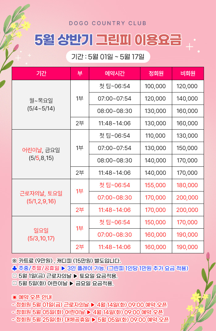| 26년 5월 1일 ~ 5월 17일 그린피 이용요금 | 26-04-14 |