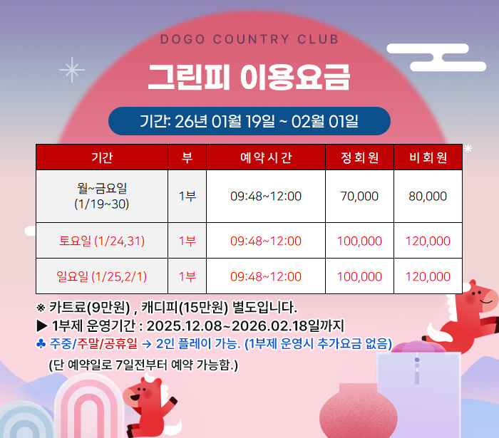 26년 1월 19일 ~ 02월 01일 그린피 이용요금