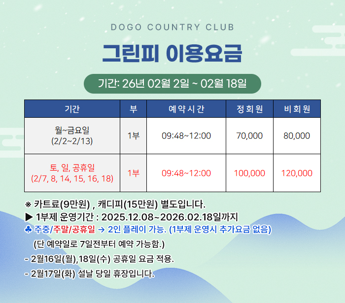26년 2월 2일 ~ 02월 18일 그린피 이용요금