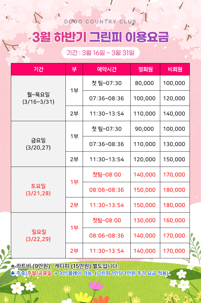 26년 3월 16일 ~ 3월 31일 그린피 이용요금