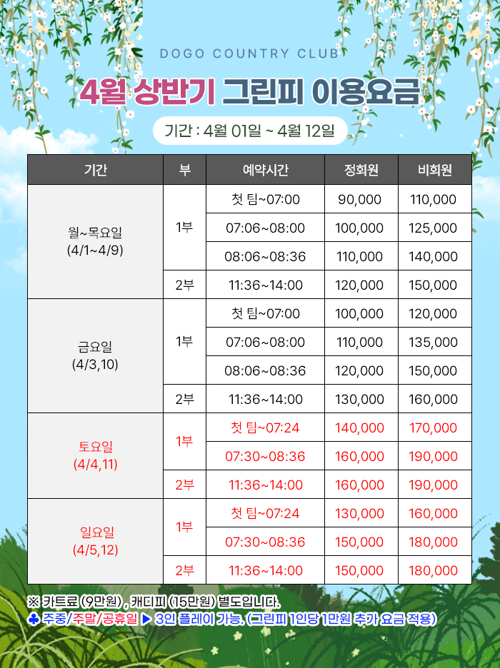 26년 4월 1일 ~ 4월 12일 그린피 이용요금